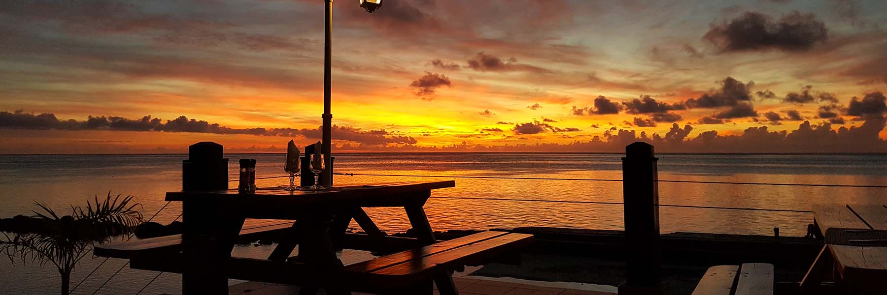 Sur la plage de sable blanc, le restaurant 'Le Sunset' vous accueille dans une ambiance décontractée et amicale.